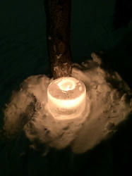 さて、バケツの中の水が凍っていたので会社の同僚(おじいちゃん)が、アイスキャンドルを作って事務所前に飾っていました