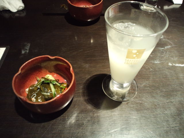 お通しは、さっぱりと「わかめの酢の物」ですね。