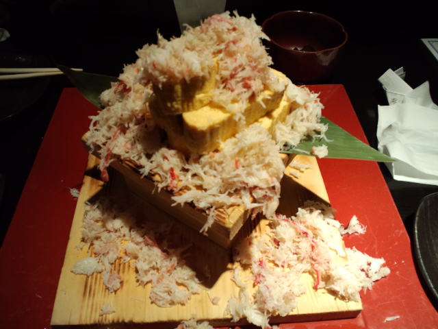 店員さんが、おたまでカニをぶっかけていくのですが。。。