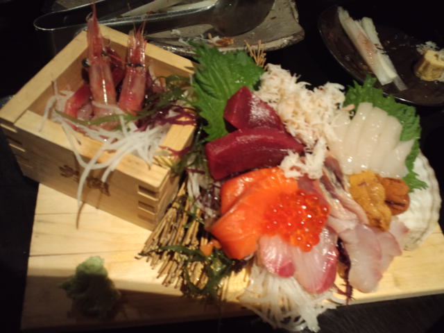 活ホタテもあって、どれも新鮮で美味しい刺身盛りですが。。。