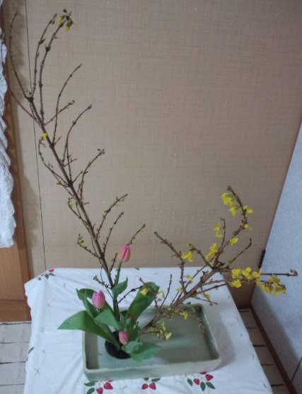 先生にアドバイスを貰いながら、なんとか生けてみました~^^