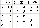 これの解き方っていうのが、①の縦列のa~eの数字を見て数式を解く。