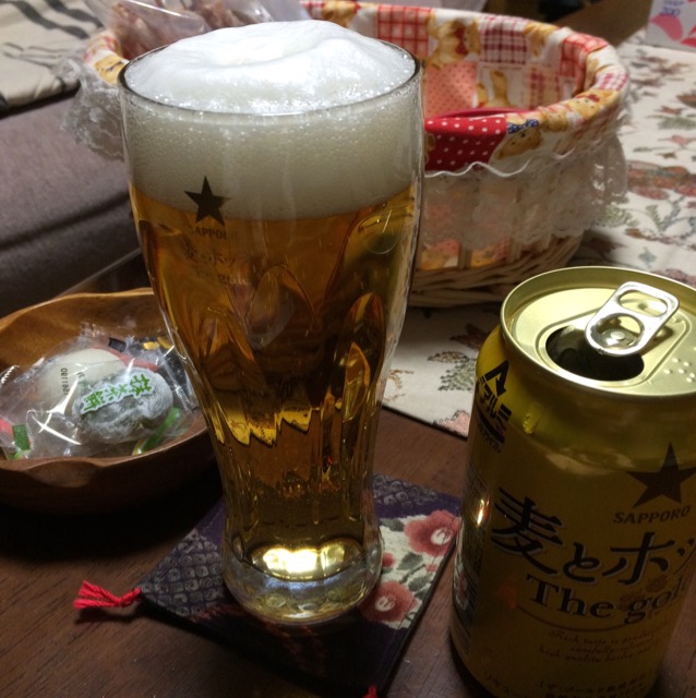 お風呂上がりに父さんのビールをちゃっかり拝借しております♪(´ε` )