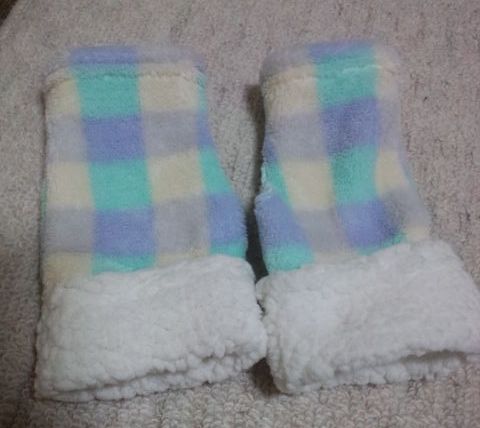 手にはモコモコの指なし手袋