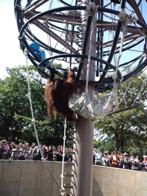 オランウータンのリアンとモリト(だったかな?)が、空中散歩の真っ最中!