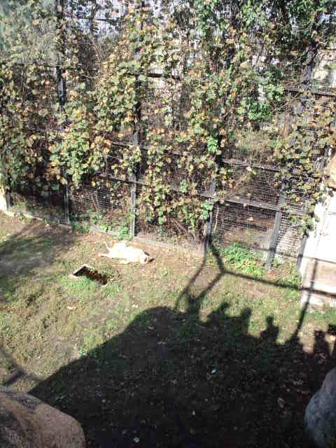 見えるかな~? 猫のようにお腹を見せて爆睡するライオン。