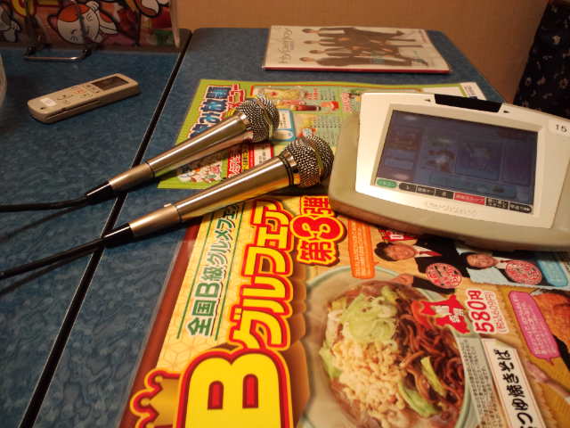 ちょっと狭くて、いまどき珍しいコード付きのマイクのお部屋でした