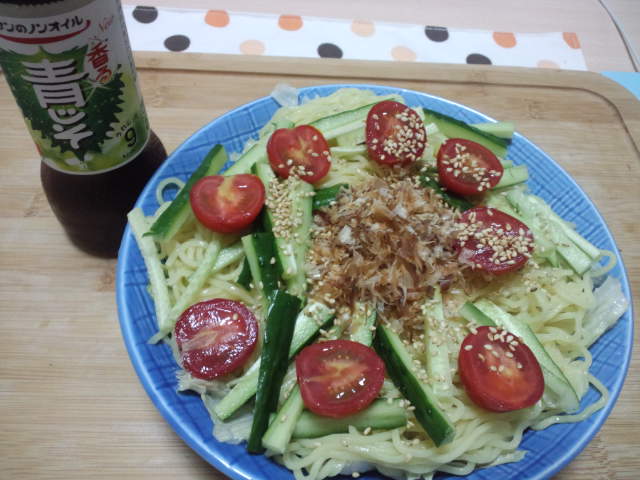 ノンオイルの「青じそドレッシング」をかけるんですね~^^