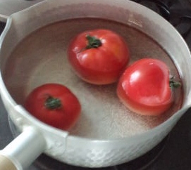 生トマトを使う時は、湯むきした後に中の種は取るんですね~
