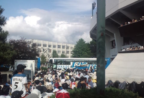 バスで帰る選手の出待ちに、たくさんの人が集まっていました~
