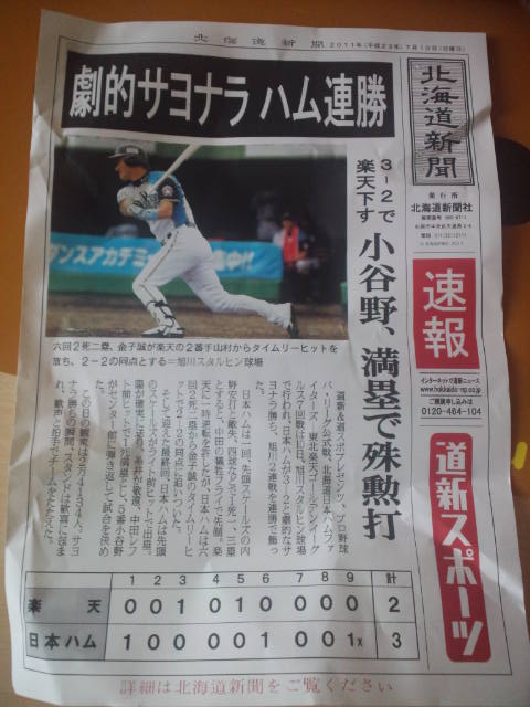 球場前でもらった、出来たてホヤホヤの今日の号外。