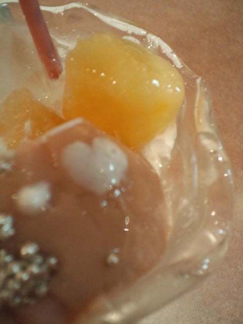 私の桃プリンの上に、可愛いハートの形が出来てました~