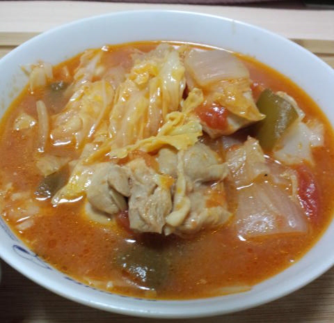 レシピではトマト缶と塩コショウだけの味付けだったけど、味見したら