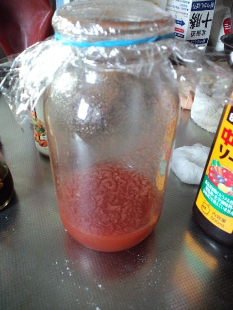 残ったトマトジュースも、ソース等を足して煮込んでおいて、
