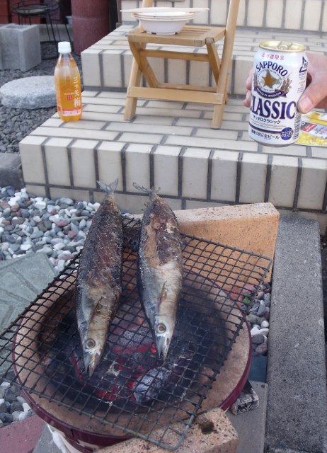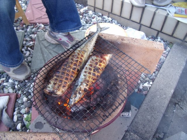 早速、実家の庭先で炭をおこし。。。『秋のサンマ祭り』