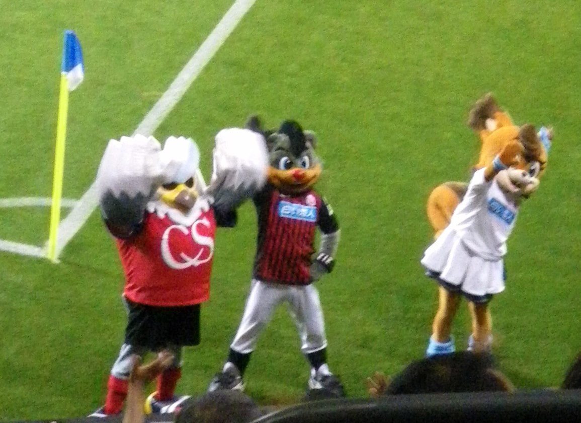 コンサのユニホームを着た日ハムのBBとポリーちゃんが、ドーレ君と一緒に。。。