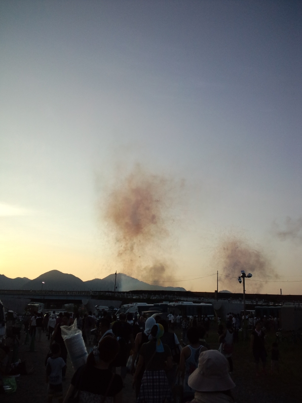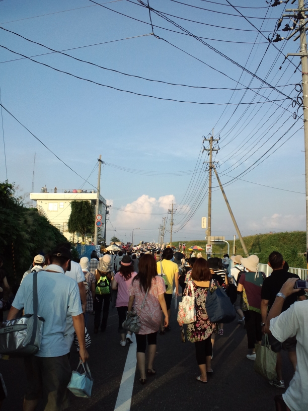 遠くに昼花火を見ながら、会場に向かって歩きます!