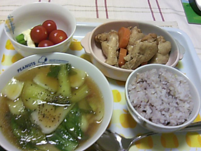 煮汁は、ちょっと酸っぱめのチキンスープって感じなので…