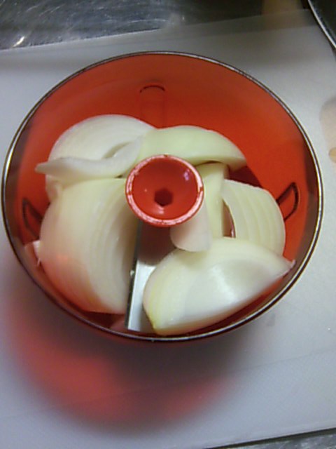 玉ねぎのみじん切りを、狭い台所でやろうとすると