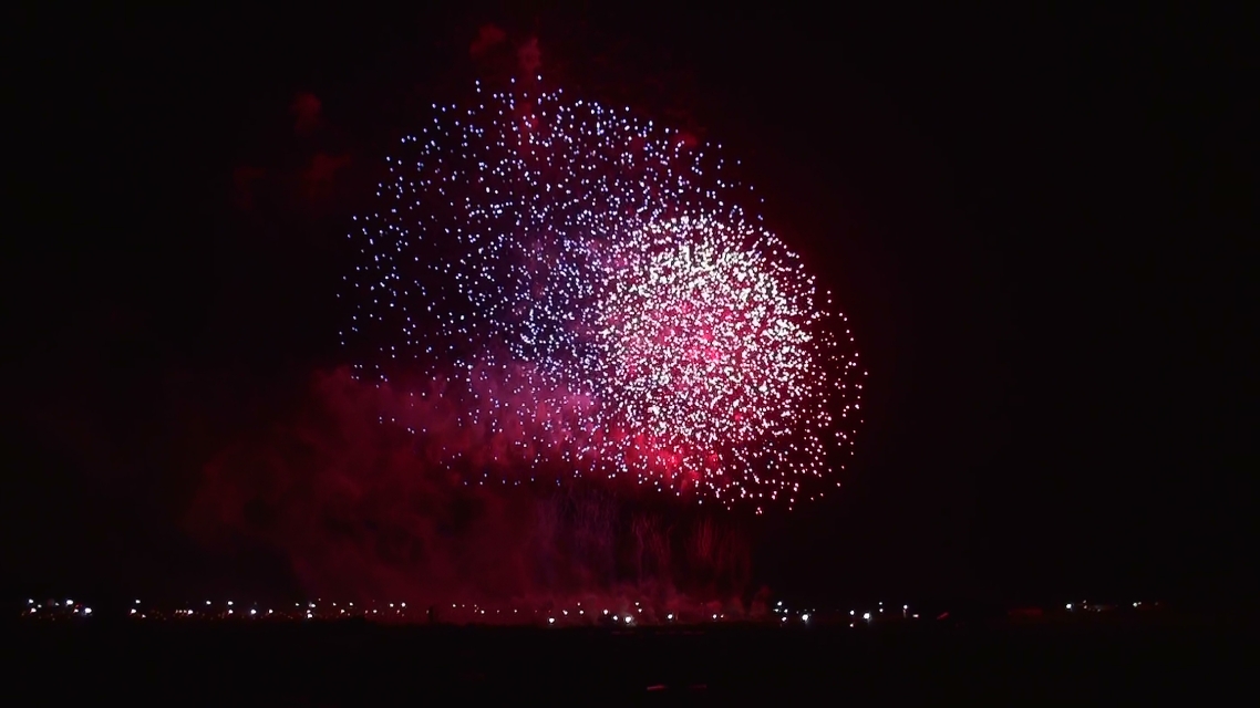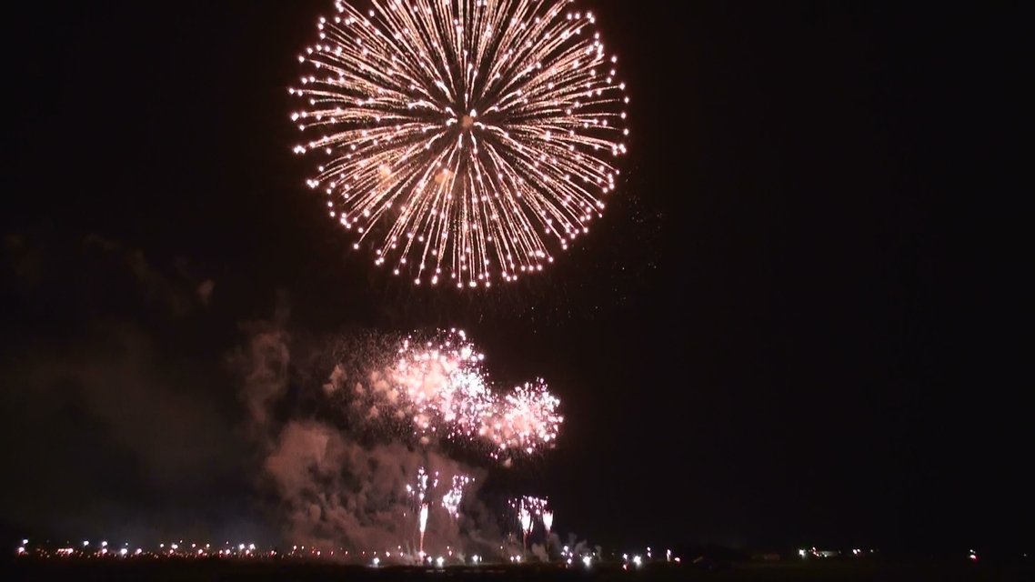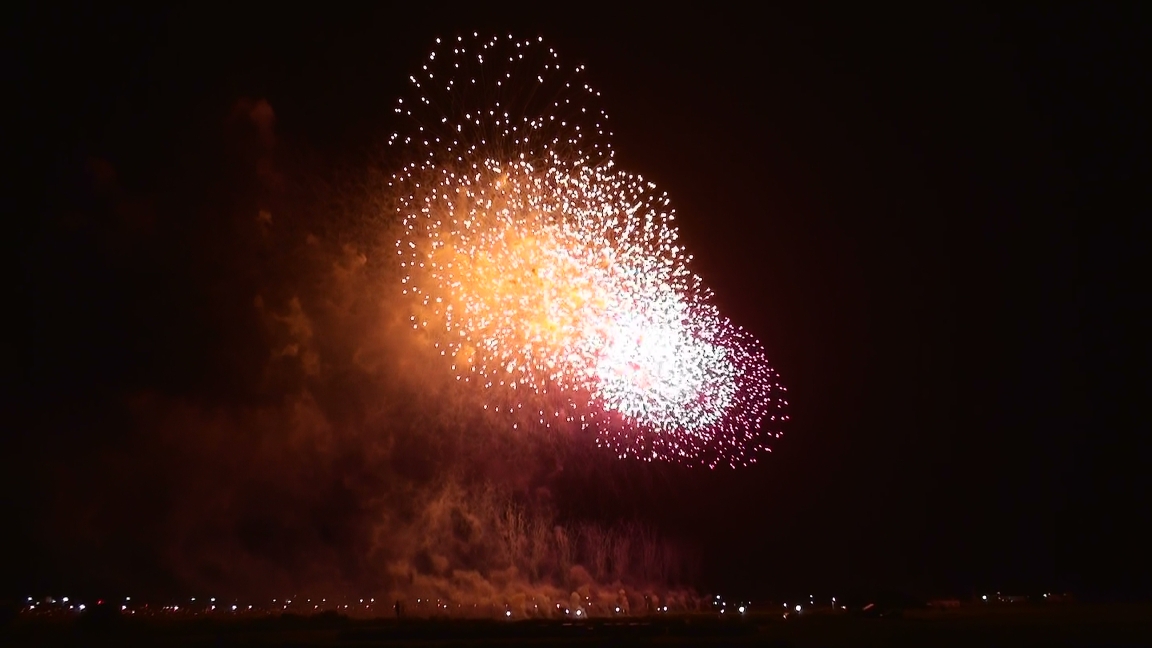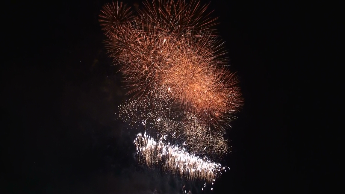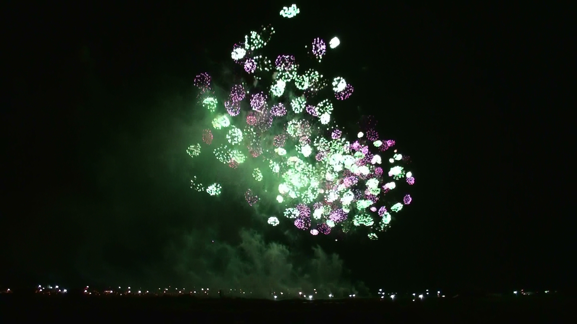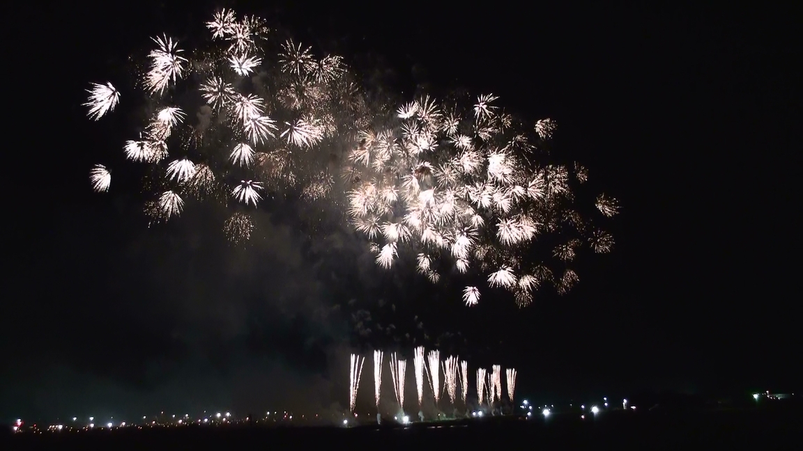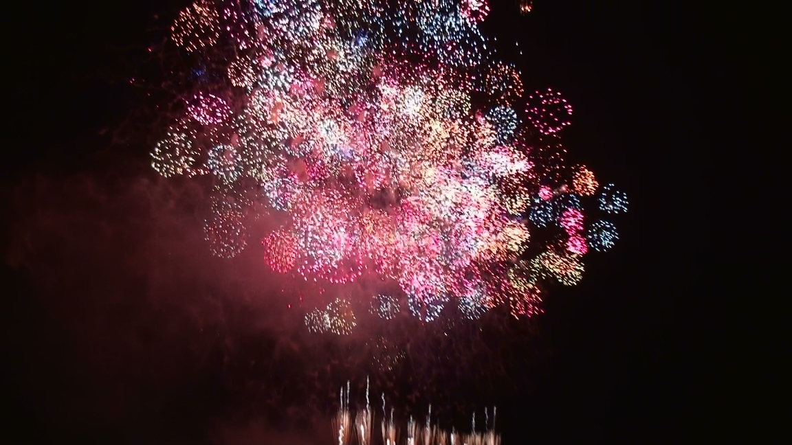 今回は一番の見どころ! 『大会提供花火』です (※クリックすると大きな画像で見れますよ^^) 花火のテーマは 『新世紀維新・武士道』 とても 幻想的で 神秘的 そして… 大迫力 流れるように 音楽に合わせて 次々と打ちあがる花火 「うゎ~~~~」 「おぉ~~~~~~」 「すごーーーーーーーーぃ!」 大きな花火達が 空一面を覆うたびに 大歓声と満面の笑顔^^ ラストは圧巻! 真っ黒な空が 一面 黄金色に光り輝きます 「わぁぁーーーーーーーーーっっ」 パチパチパチ~~~ 「すっごい! ホント すっごいよ!」^^ も~ 大興奮! 心の底から「見に来て良かった~」と思った瞬間でした!