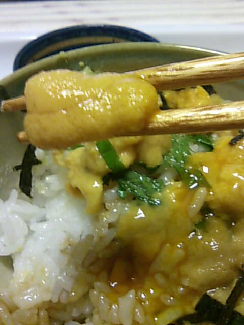 黄身醤油でうに丼をいただきます!
