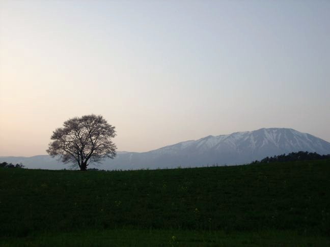 ちょうど一本桜のある場所に到着した頃には、陽も沈み