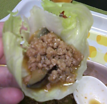 味がちょっとだけ濃い目なので、レタスにくるんでみたら