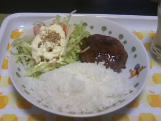 晩ご飯は、実家からもらってきた小さめのハンバーグを