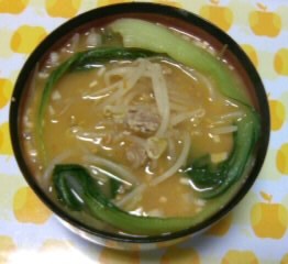 もやしとチンゲン菜と挽き肉が入っているんだけど