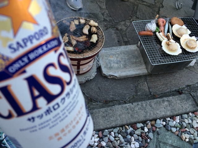 まだ明るいうちから炭をおこして〜の、焼き肉&ビール♪