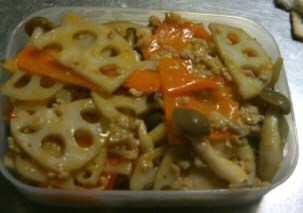 『レンコンと鶏そぼろの辛みそ炒め』です!