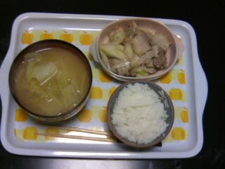 『白菜たっぷりのピリ辛味噌汁』と、炊き立てのご飯です^^