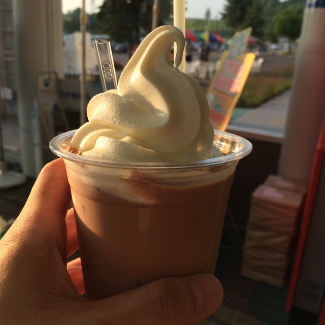 夕方なので、チョコレートドリンクにソフトクリームが乗った一品♪